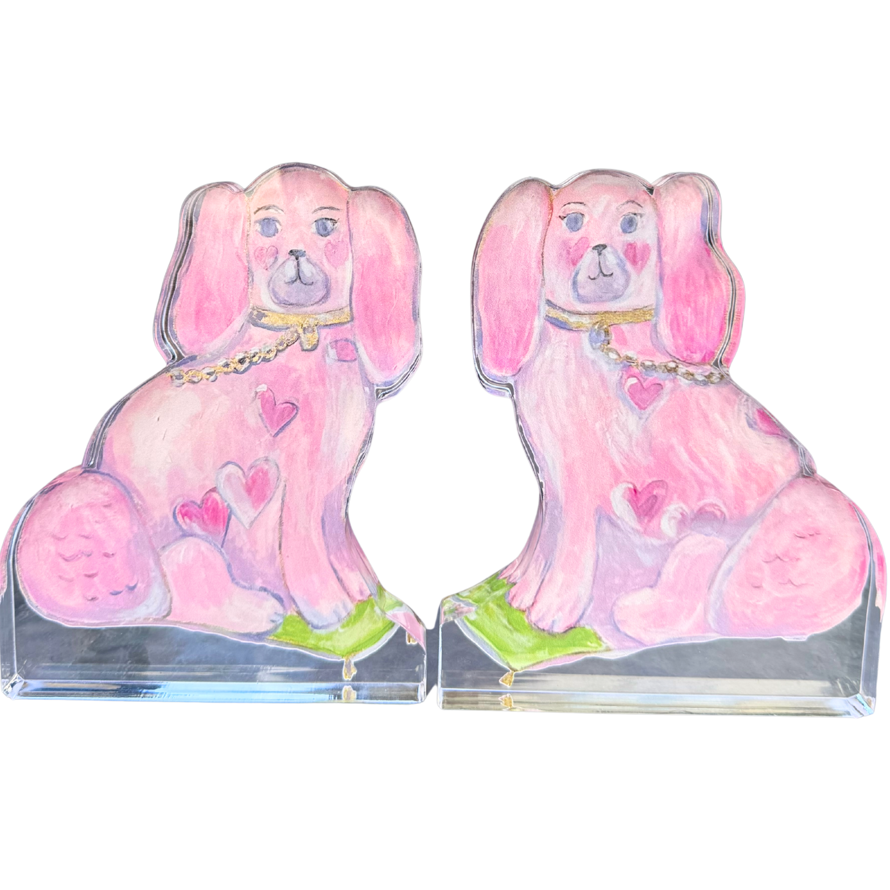 MK Decker Designs - “Set of 2 For the Love of Dogs in Pink” Acrylic Shelfie: Mini Size Dog Pair