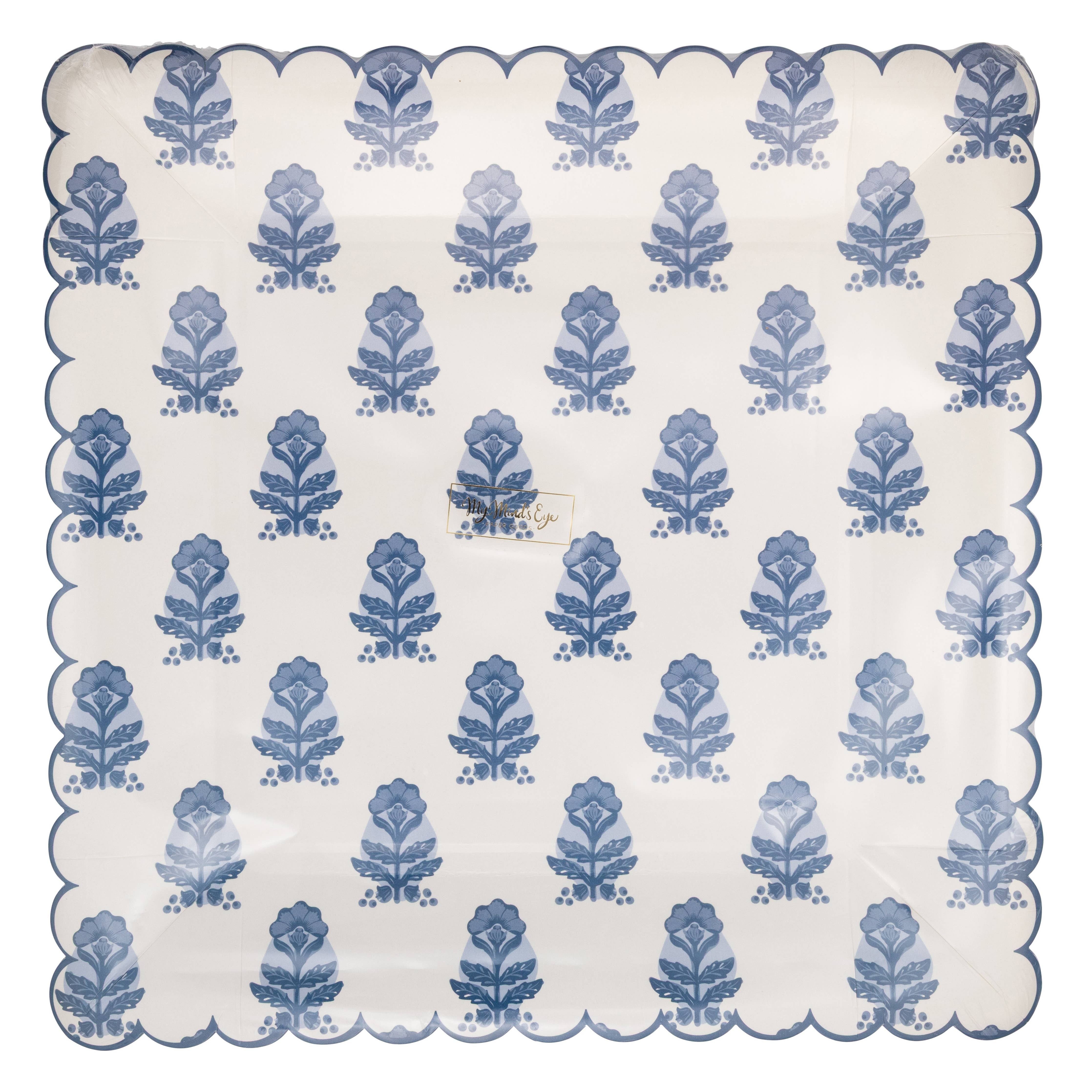 Bring springtime charm to your Easter celebration with this delightful 10" square plate featuring a cheerful light blue and cream flower block print design. Perfect for festive table settings, this charming piece adds a pop of botanical beauty to your holiday spread. • Light blue and cream flower pattern square plate • Scalloped edges • Includes 8 shaped paper plates • 10" x 10" View the Bluebell Hill Collection HERE 3 sets make 1 wholesale pack.