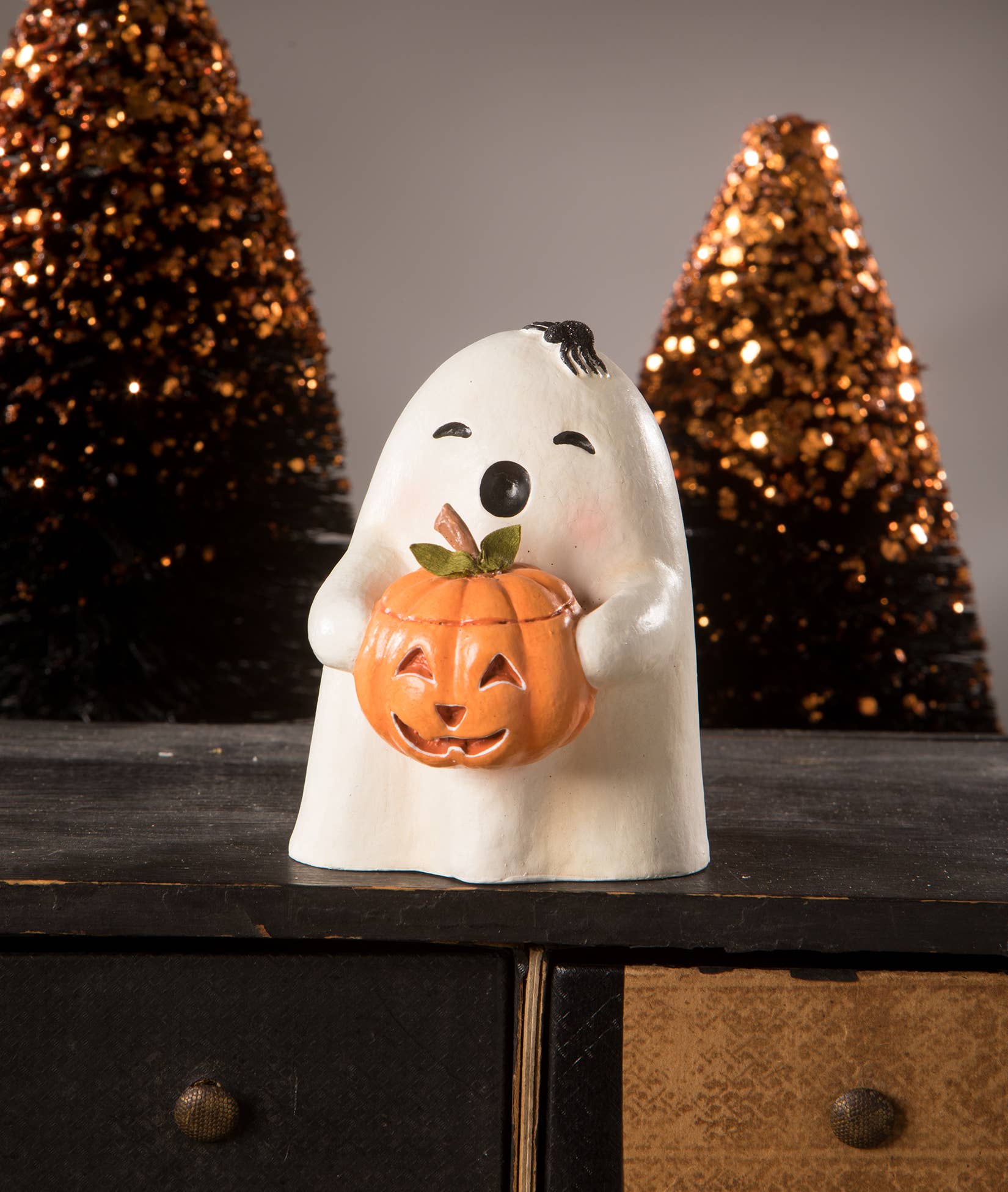 A sweet, paper pulp ghost holding a smiling jack o'lantern makes a great gift or the perfect addition to your halloween collection. Bring the magic of halloween to life in your home with specialty holiday décor by bethany lowe designs. Paper pulp, crepe paper, and glitter.