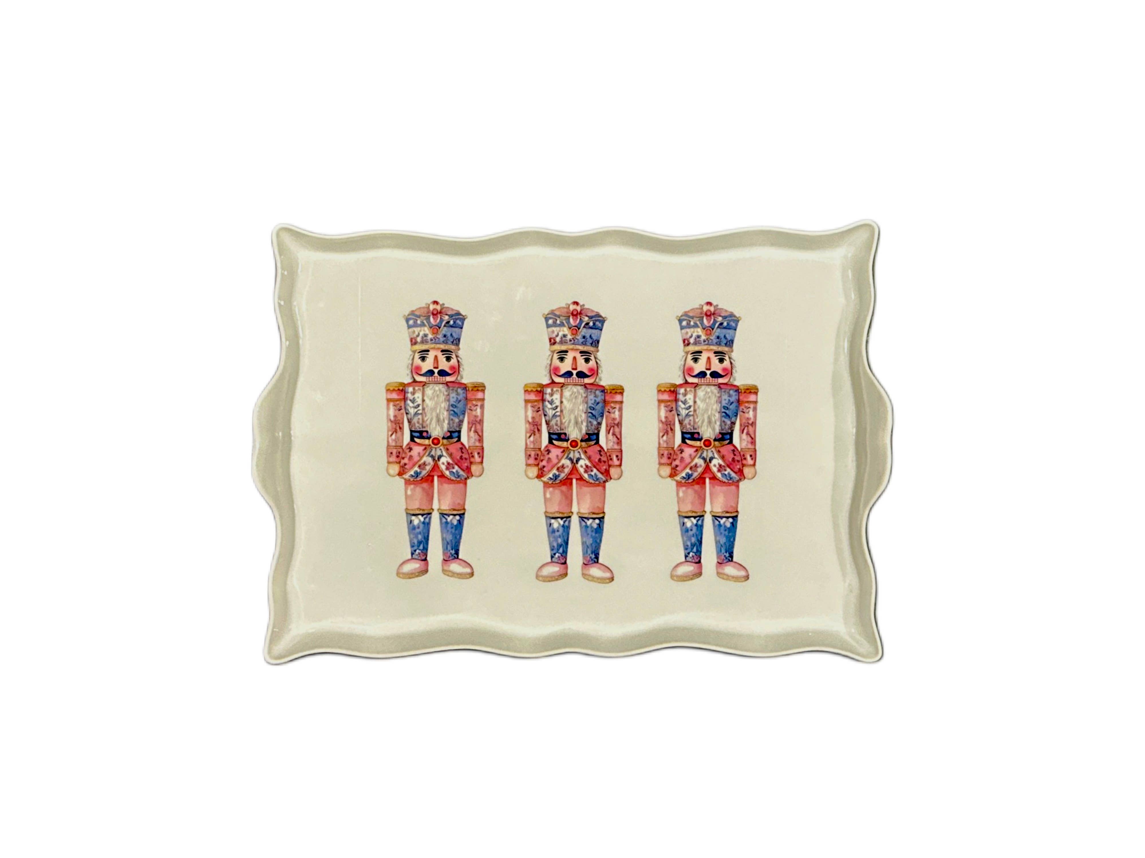 The French Bee & Co - Christmas Nutcracker Chinoiserie Coupe Tray, White
