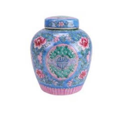 Lidded Chinoiserie Tea Jar Pink Blue Green Floral Design